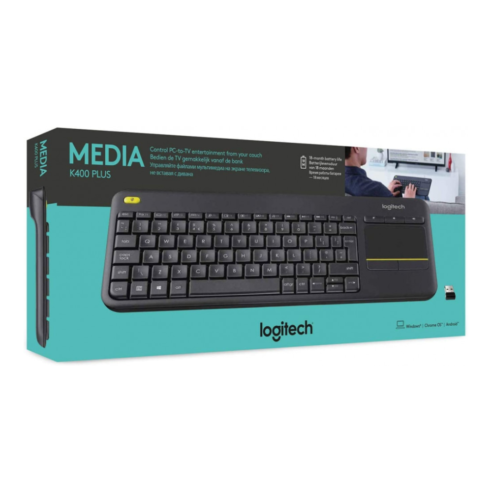 لوحة مفاتيح لاسلكية من لوجيتك مع لوحة لمس ، أسود K400 Plus