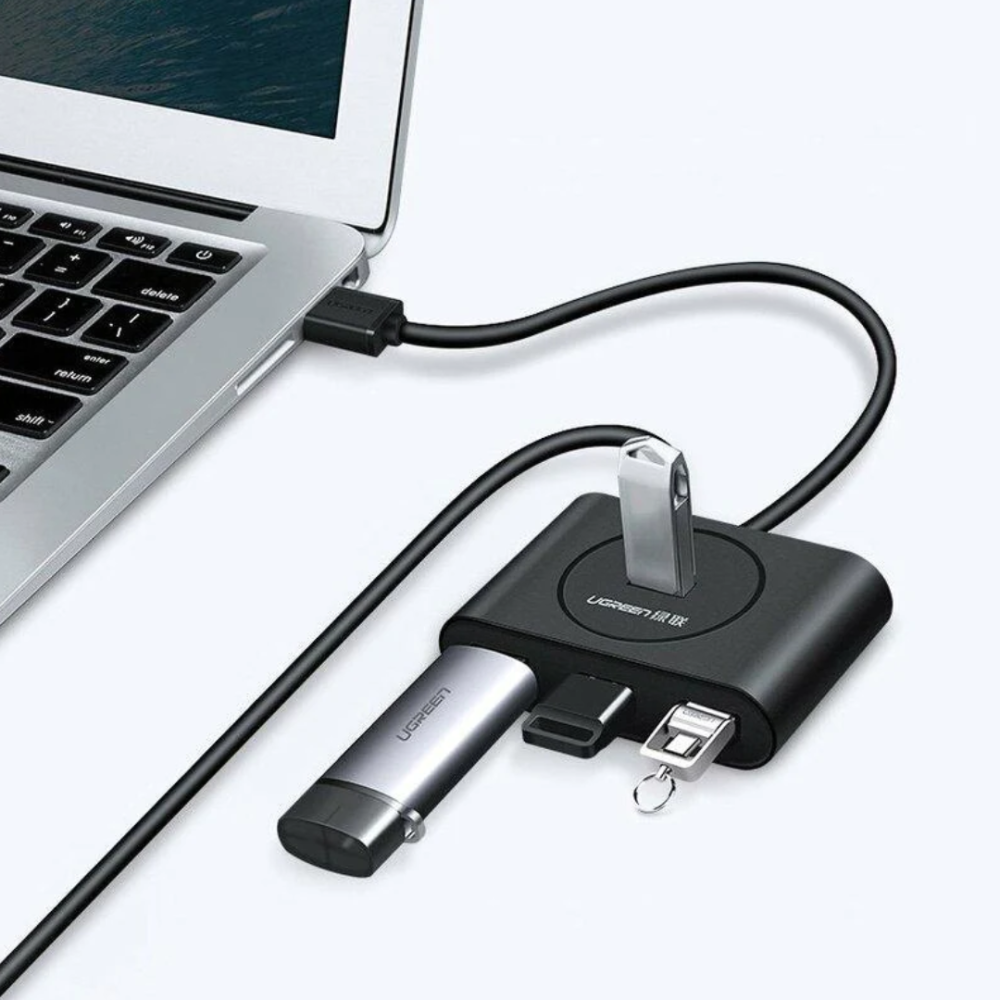 يوجرين موزع USB 3.0 مزود بـ4 منافذ USB يضم 3 منافذ لنقل البيانات بسرعة عالية، مناسب لماك بوك اير وماك ميني واي ماك برو ومايكروسوفت سيرفس والترا بوك مع كيبل بطول 1 متر ولون اسود